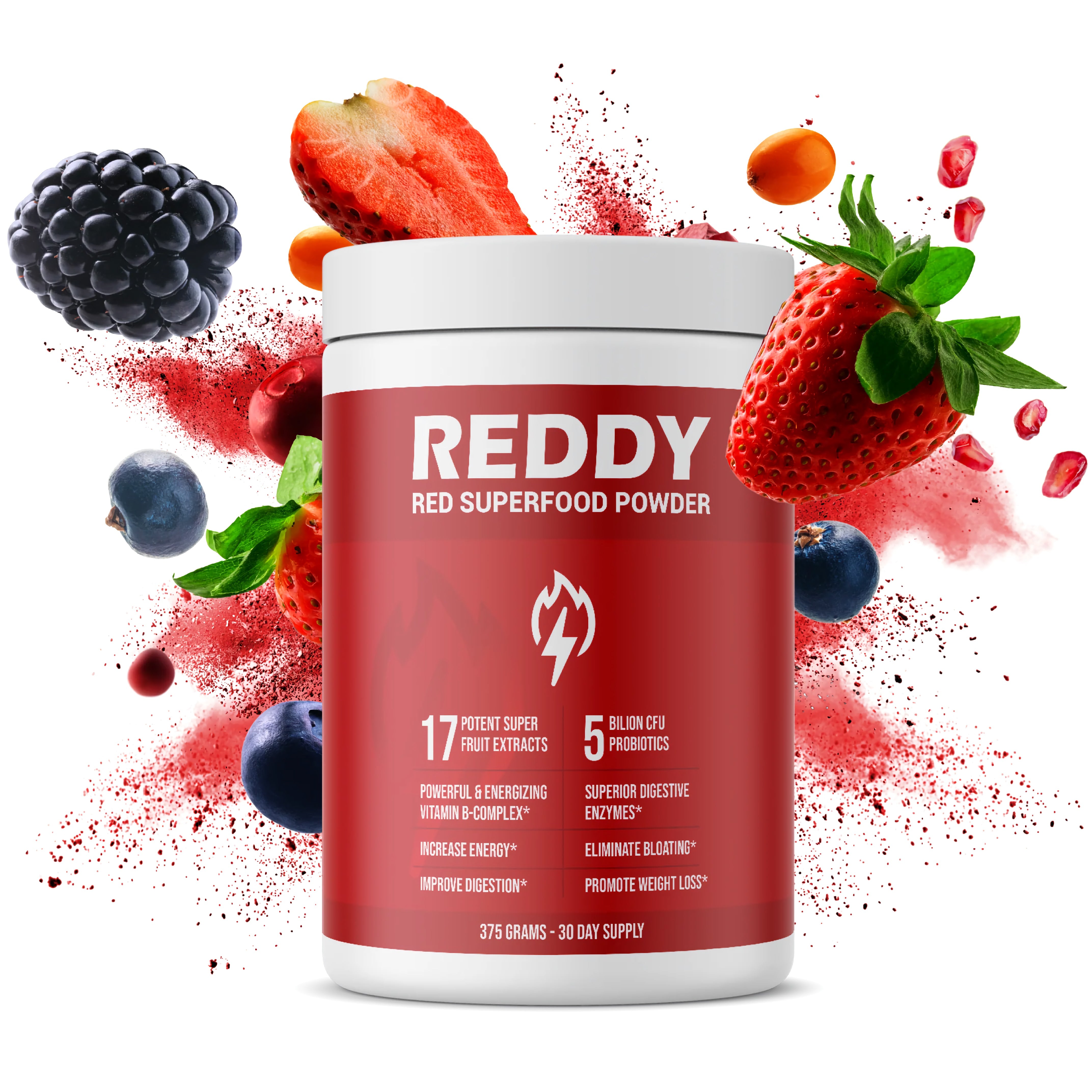 Imagine the potency of 17 world-renowned superfoods like acai berries, goji berries, and turmeric, all in one scoop! Reddy is your daily infusion of phytonutrients that deliver unparalleled cellular defense. From antioxidants to anti-inflammatory compounds, our blend harnesses nature's finest to infuse every cell with vitality. Infuse Your Cells with Reddy Today!